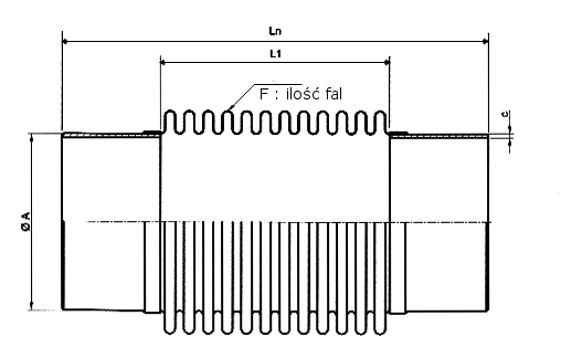 wymiary mieszków stalowych kompensatorów mieszkowych PN25